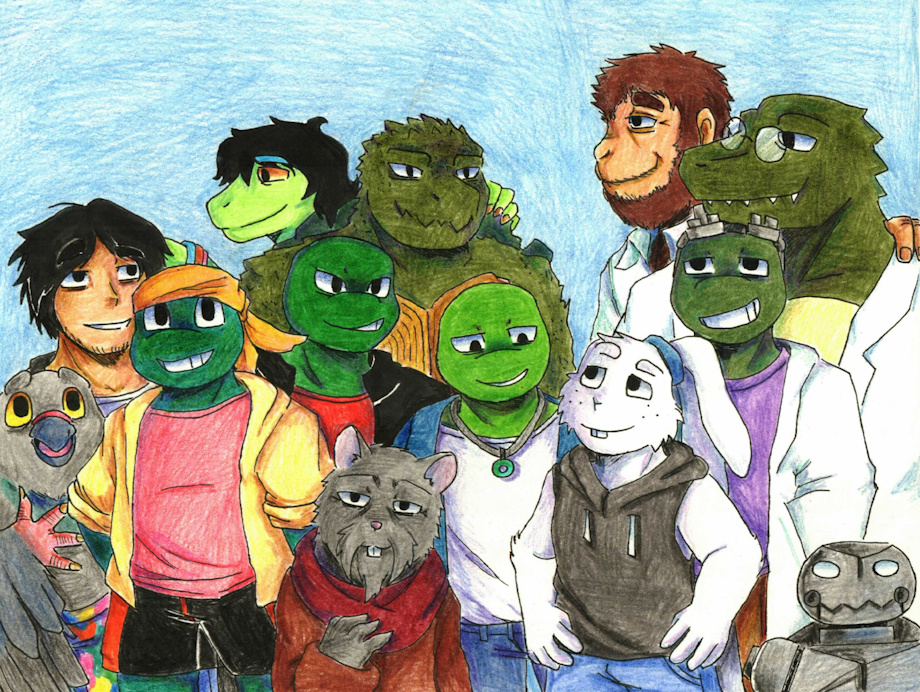 First time drawing rockwell, I think I made look young. Also Casey, first time drawing him. And metalhead is in a prototype phase.