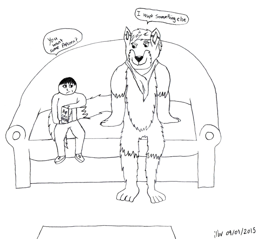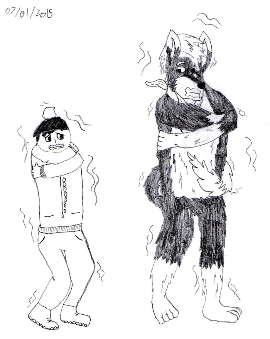 The first night I stayed over, Jett treated me out to dinner at a restaurant (I was not on the menu this time) and it was a decent distance away from his house. After we had our meal, I recall I had a large burger of some kind, it was delicious. We were on our way back, walking to Jett's house and it started to get extremely windy and cold, at one point it was snowing and we were both chilled to the bone. I remember at one point we were walking across a bridge or an overpass and joking about how cold it was and how I bet he had his Wolf Fur now. Neither of us said it, but there was for sure a vore joke in there somewhere as well.