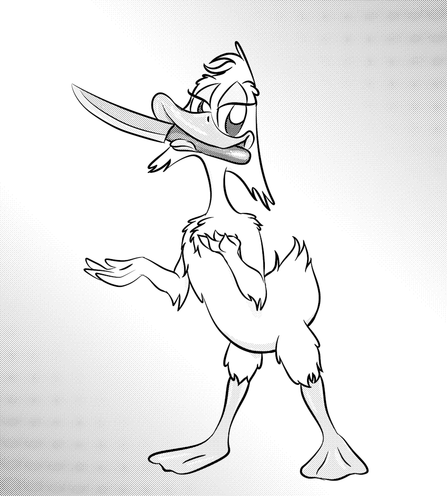 This is a silly idea I had on the eve of (K)inktober. It's not a new idea considering I posted a stabby duck picture seven years ago. I guess it is kind of kinky since piquerism is a kink, right? Or a fetish. Or a disorder? At least she isn't stabbing anyone at the moment.