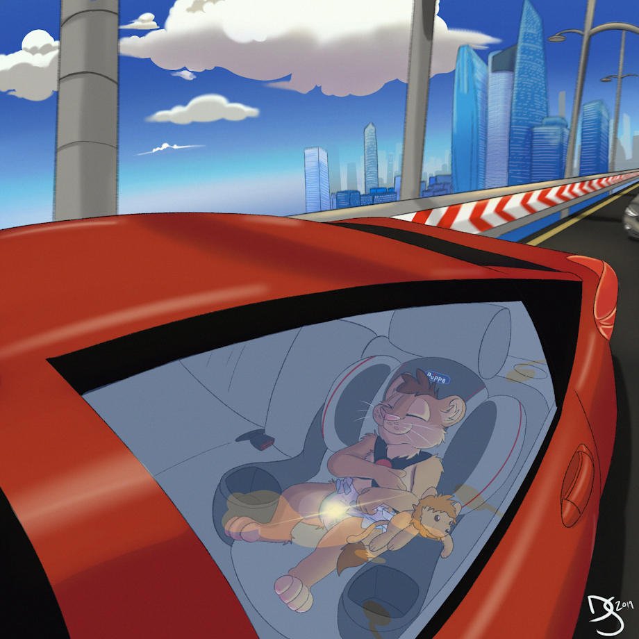 Nothing is more chill than watching this little one on his way back home from a long journey, all safely snuggled padded and hugging his favorite plushie