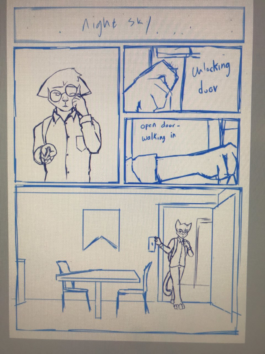 Nothing like a late school day to come home and need to rest. Guess it’s nice being alone, no one to bug so late. Drawn by Rayray Wolfie.
