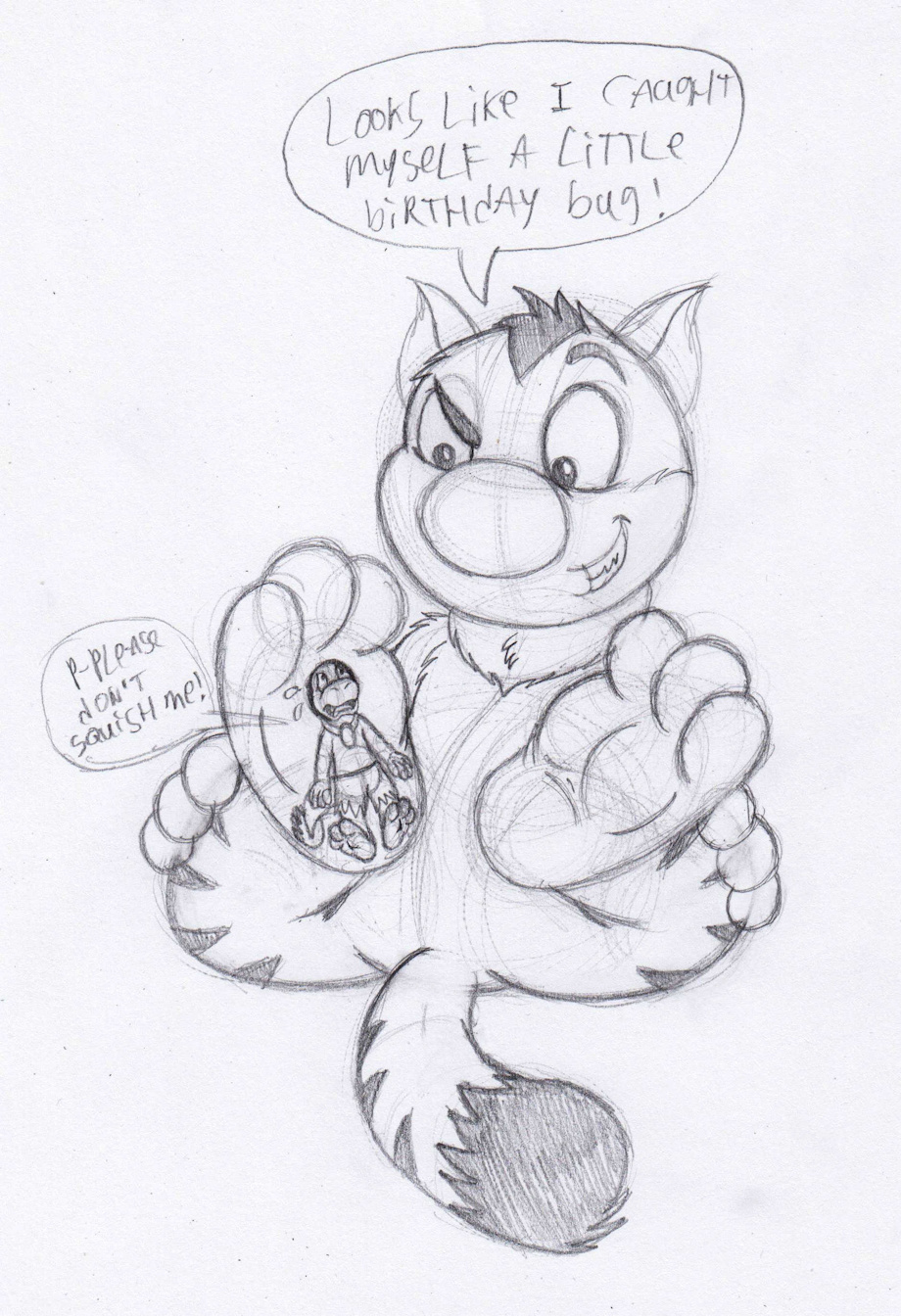 Heh~ Bet you'd love to see that... Oh, and I will! *giggles as he wiggles his big pudgy feline toes* ;P