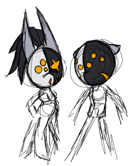 Shukura and Gideon, now including the designs for their helmets they wear while working.