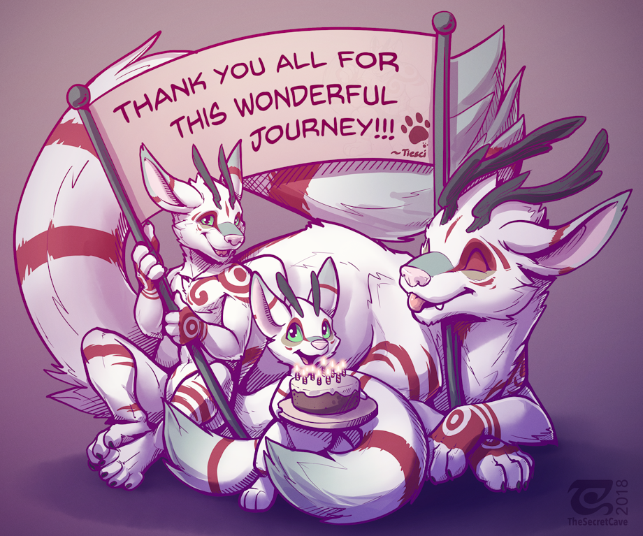 So here are the 4 versions of Tiesci celebrating and thanking you ^^ (yes, 4, though the last may be hard to see XD) Thank you all from the bottom of my heart, its been a fantastic journey so far, and I hope I can keep traveling this path with you all ^^