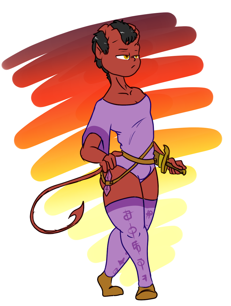 What better piece for my first upload than my wide-hipped demon-blooded wizard boi, Melisandrius? My character in a deviancy-infested 5E campaign, no less. He, along with several thousand others on a mysterious island, got Shota-ified by a wave of mysterious magic. Terrible fate, really. No, it is, I promise. >.>