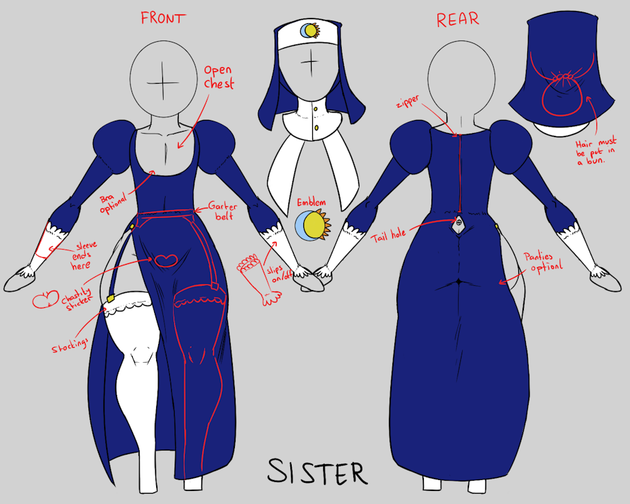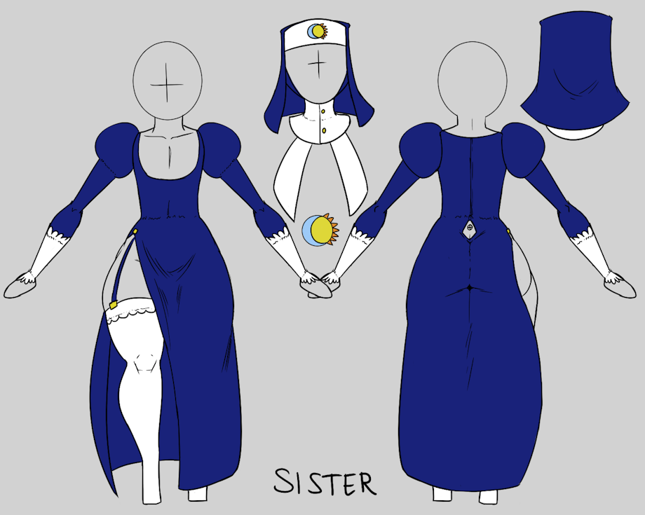 Ref sheet for the uniform worn in the Church of the Two Sisters. Now your OC can wear the robes too!