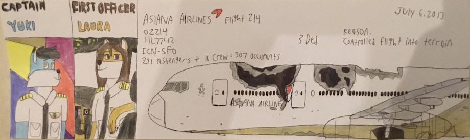 Asiana Airlines Flight 214 was a scheduled transpacific passenger flight from Incheon International Airport near Seoul, South Korea, to San Francisco International Airport in the United States. On the morning of 6 July 2013, the Boeing 777-200ER crashed on final approach into San Francisco International Airport. Of the 307 people on board, three died; another 187 were injured, 49 of them seriously. Among the injured were four flight attendants who were thrown onto the runway while still strapped in their seats when the tail section broke off after striking the seawall short of the runway. It was the first fatal crash of a Boeing 777 since that aircraft type entered service in 1995.