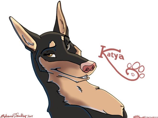 Meet Katya, character me and my sis Mykie came up with while she was playing Sims 4 and my counterpart Bandit on there had pups with another pupper named Sandwich Bimbo Baggins and this lovely character was one of the possibilities XD