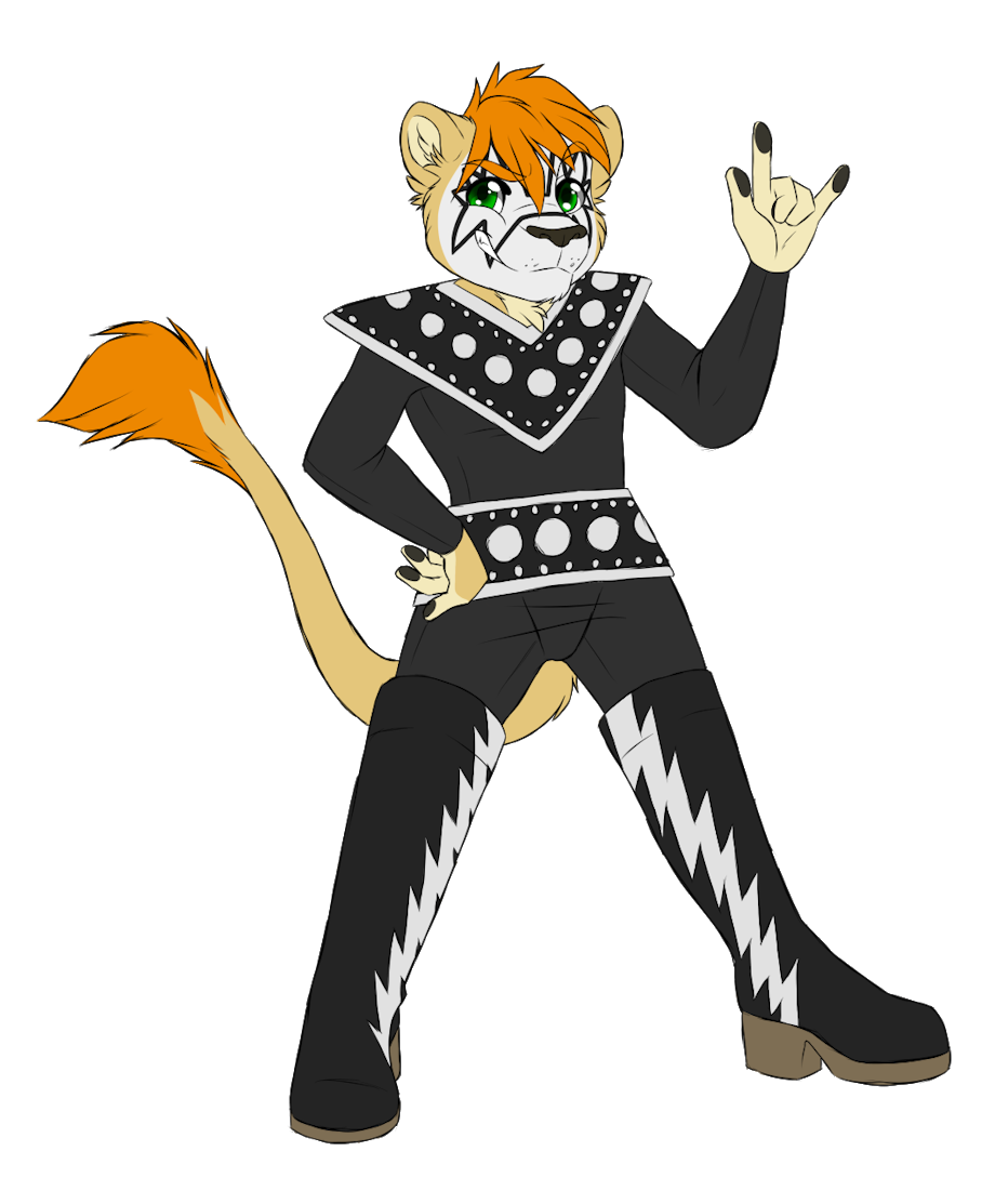 Here we have a young Dorado ready to go out trick or treating! Dressed as the lead guitarist of his favorite band Kiss (or Lick, im still deciding if a furry themed version of the band would be appropriate). He's ready to go have fun, get lots of candy from around the neighborhood, and maybe even attend a halloween party afterwards! ;)