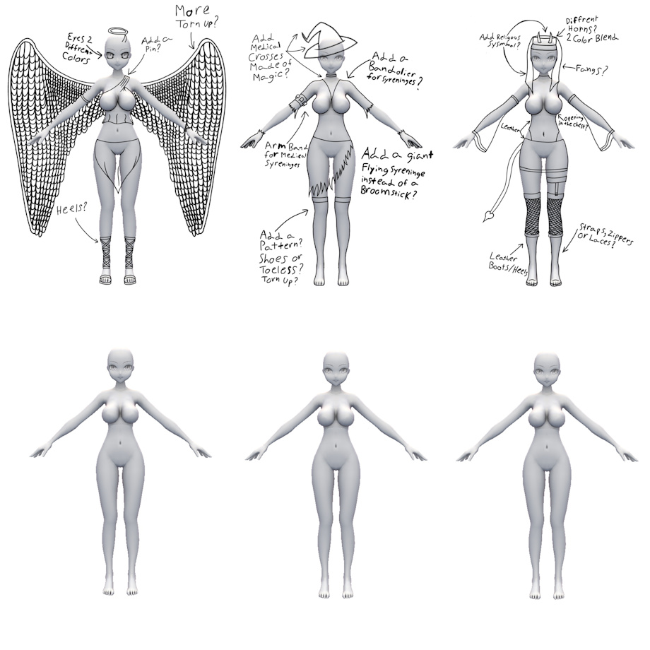 and comeing up with a fun little Halloween Comission, I drew out some rough Costume Ideas for her. Might come up with some more down the road, we'll see.