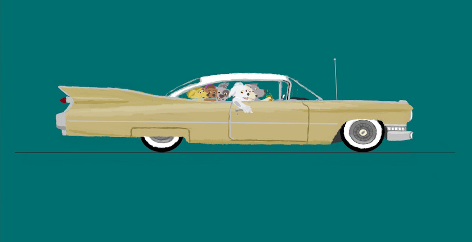 The Gotham gold and white, 1959, two door, Cadillac Coupe-de-Ville, which is a one year old car at the time, is one of the Cadillacs belonging to Biff and Richie's parents, Reginald and Diana..."Daddy's car".