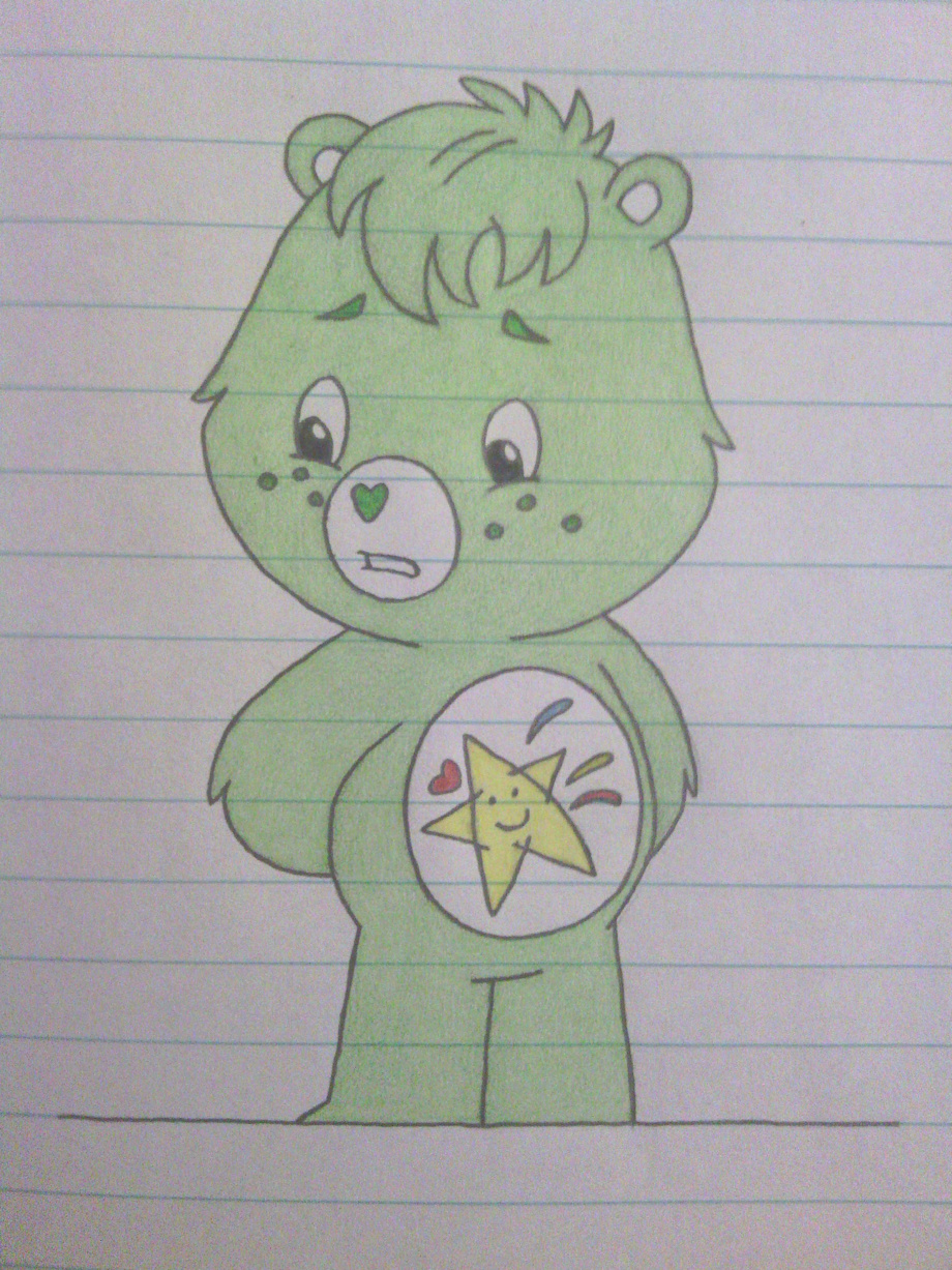 So anyways, again here's the second sketch I made of Oopsy Bear. This was just a pose I HAD to draw lol. He looks nervous or shy lol. In the actual episode however, because of his clumsiness, let's just say he caused one of Grumpy Bear's newest inventions to malfunction. And it went through the ceiling, causing debris to hit his head lol.
