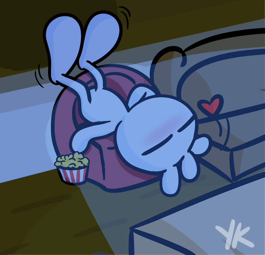 so hes wagging around his huge squishy bunny feet around while hes watching the movie
