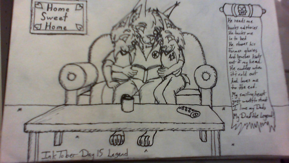 The Lynx Family again. You guys bored of these folk yet? :P Christmas scene. Poem is longer, read it below: "The house is cold Our tummys grumble It's hard to make the rent. But strong we hold And we stay humble And monthly make a dent. Our hand-me-downs Patched full with stitch Time and care well spent But Joy abounds Our Tree looks rich Adorned with Ornaments."