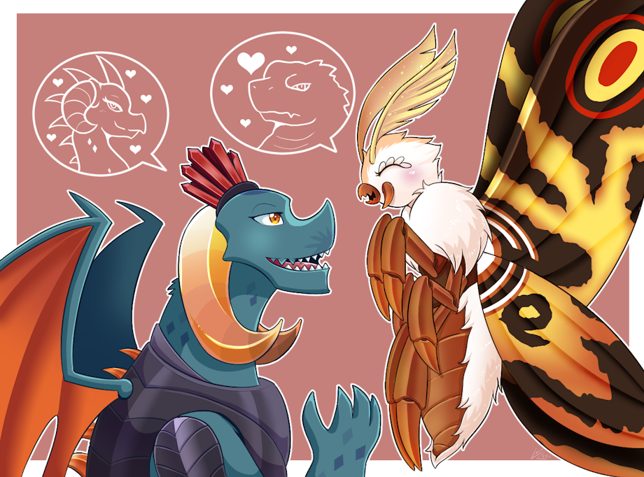 This is a crossover art between MLP and the Godzila : King Of The Monster series.