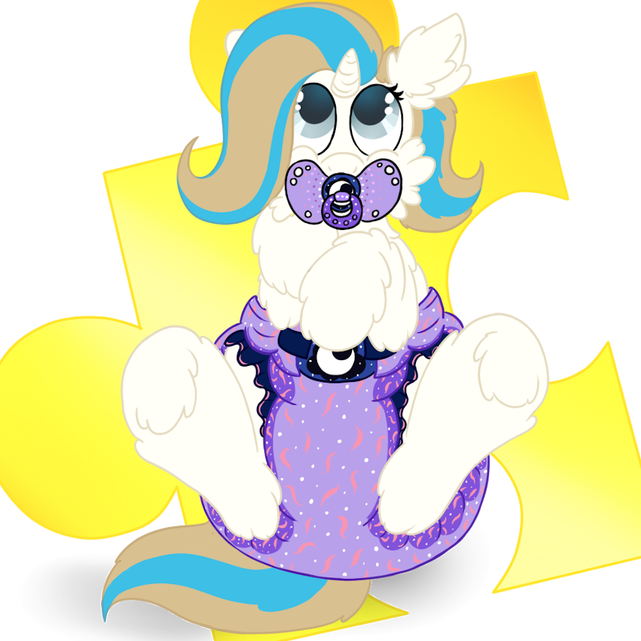 Just a cute little picture with me suckling a Luna printed pacifier and wearing a night sky printed diaper with red feathers and a Luna Printed tape. This picture is by the very lovely and floof overloading plinkiepoi Give her a watch and such, she's awesome~!