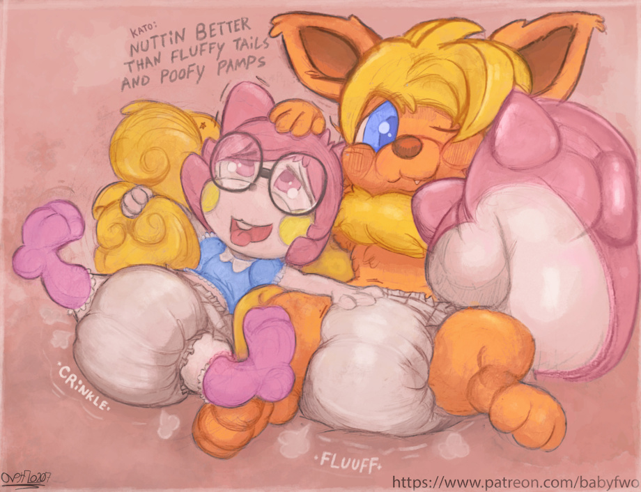 Who wanted Kato and Zhara (Telly's OC) in their poofy squishy stinky pamps, laying on fuzzy tails, enjoying one of those comfy lazy crinkly days, where you realize you have a baby-powdered pillow for a seat.