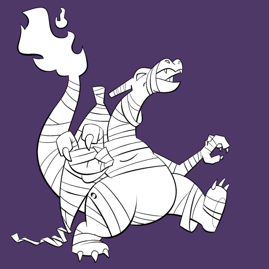 His Charizard all wrapped up like a mummy for Halloween! Spooky times abound!