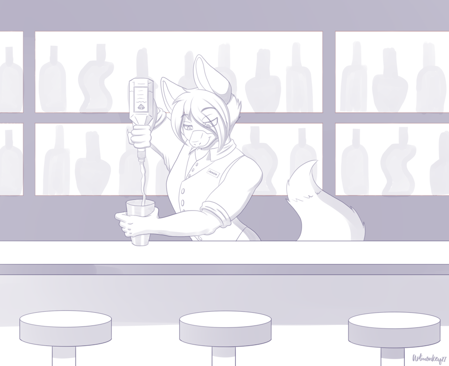 A doodle of a male version of my fursona again as a bartender.