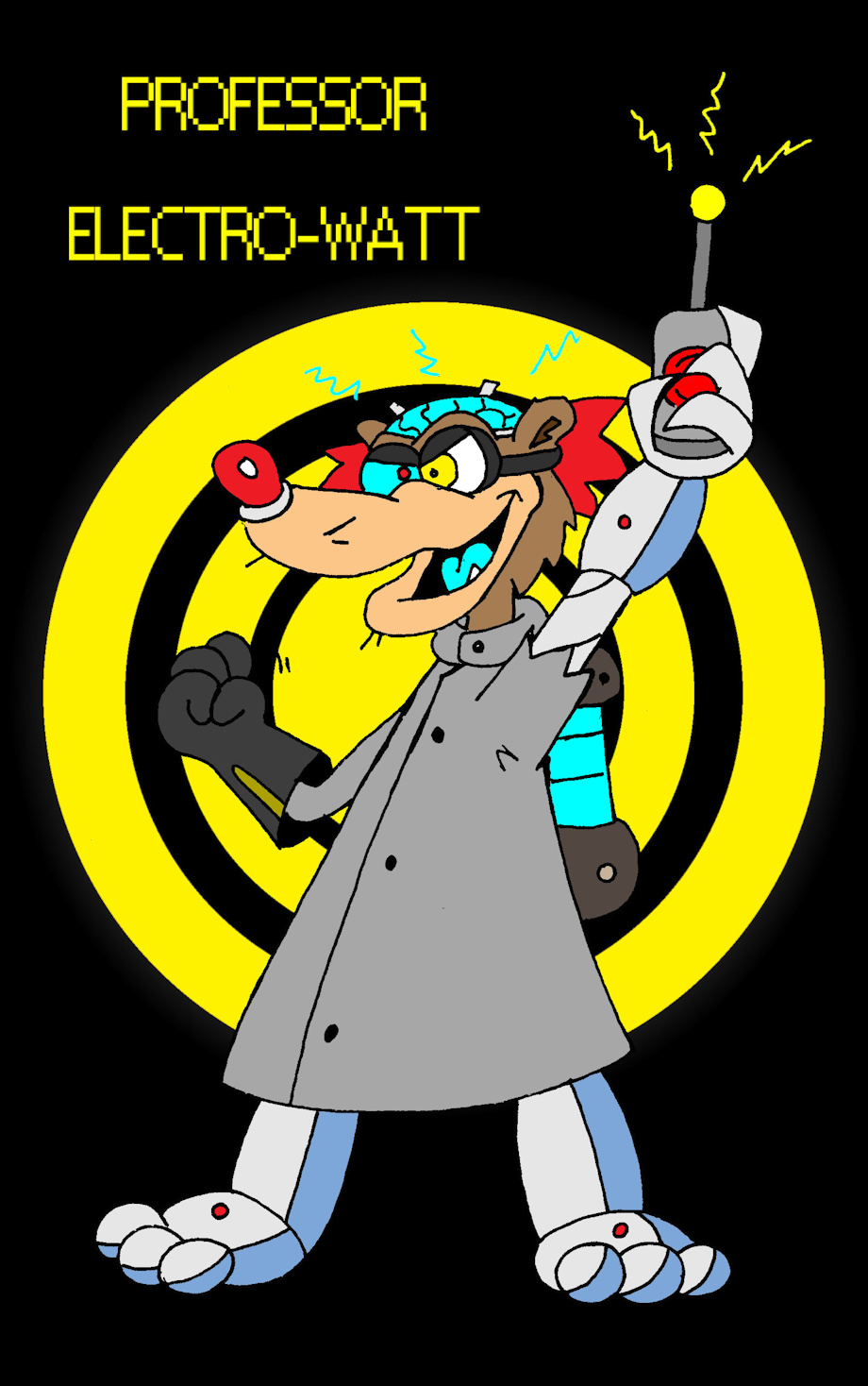 Roger never was a weasel who could stand out positively, always coming across strange or too involved in his work. Working for the largest robotics company in the city, he quickly moved up through the ranks. Sadly, his robotic creations seemed to be constructed to harm and abuse instead of providing a better way of life for the citizens. Not satisfied with being an underling of the company, Roger secretly started to build himself a robotic army capable of taking over the company and even the city, though he was exposed and foiled by The Vulpine before this dream could come to fruition. Not willing to be defeated, Roger took to experimenting on himself, becoming more machine than weasel. Now, robotic and on another level of power and skill (at least to him), Professor Electro-Watt has one goal in mind: Take over the world with his new robotic army and get rid of The Vulpine!