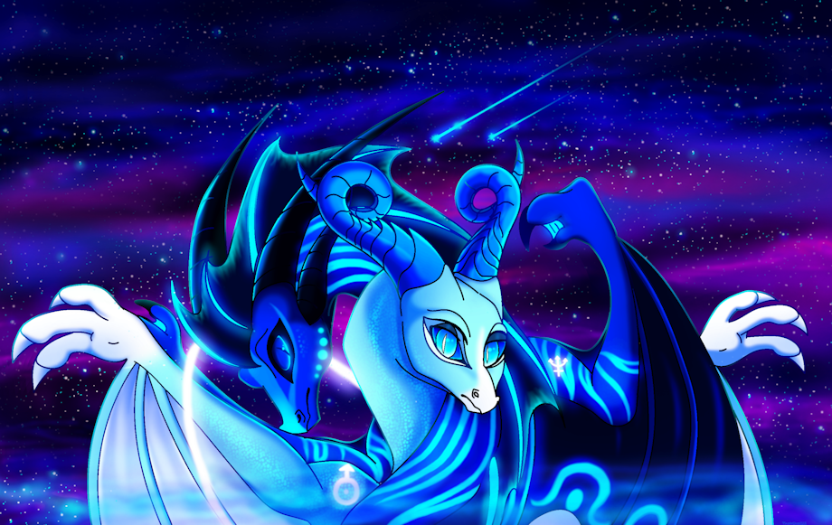 Like I said, I wanted to make my Planet Dragons into my OC's :la: Cause I loved their designs too much :'D I'll be making more pics of them~ I also really wanna make mini comics or something :XD: But yeah, here's Uranus and Neptune c: I kinda like to think of them as twins