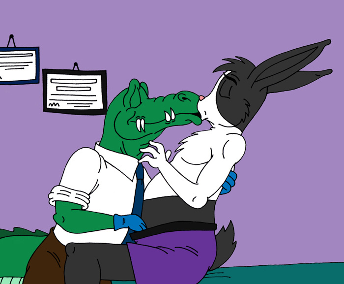 Lucas is at the doctor's for a routine checkup. Things get weird. "Why so nervous?" asks the doctor to Lucas as he uses his stethoscope to listen to the rabbit's heartbeat. His body, though, is responding to the handsome (for an alligator) doctor's touch, as his boxers bulge a bit. Lucas and his doctor then get a little too into the examination.