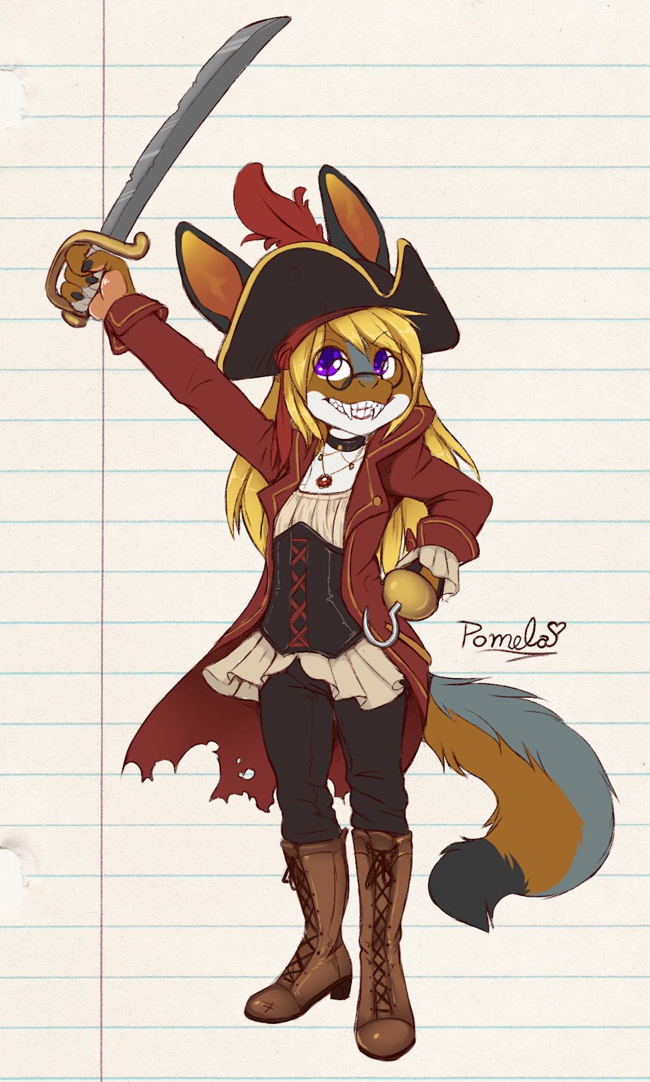 This was such a wonderful surprise, and it's a gorgeous picture of my little Emer. Her outfit is simply adorable, and I love all the detail you've put into everything, especially that cute little choker and pendant set she's wearing, and her nifty boots! She looks so proud of herself, and her big, toothy grin is such a big part of what makes this piece, I think. I'm so glad you had fun with it and thank you so very much!