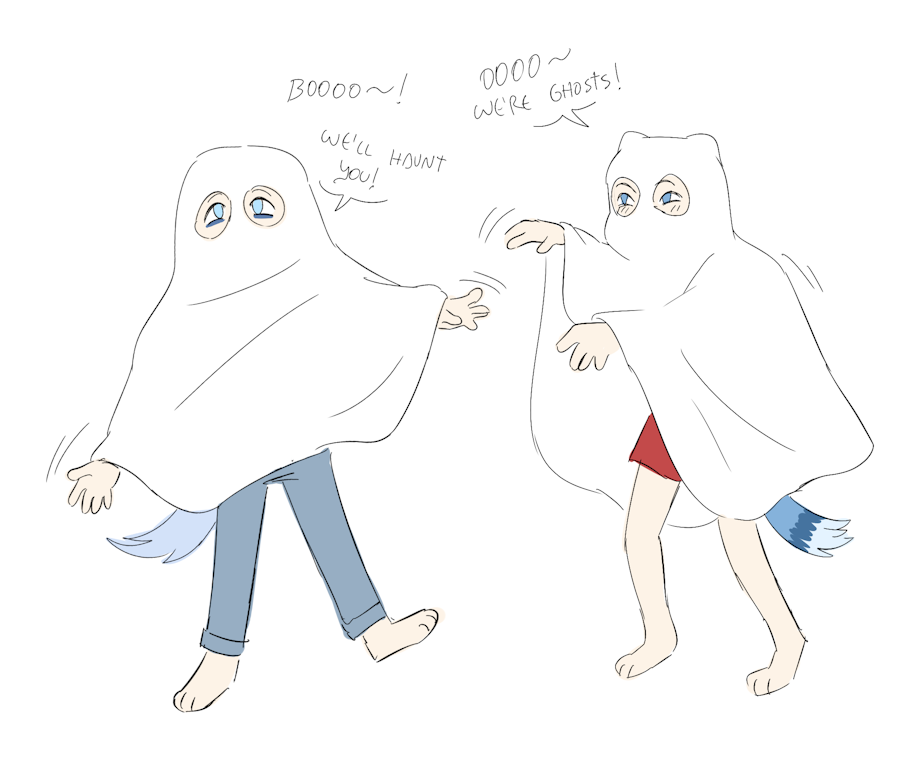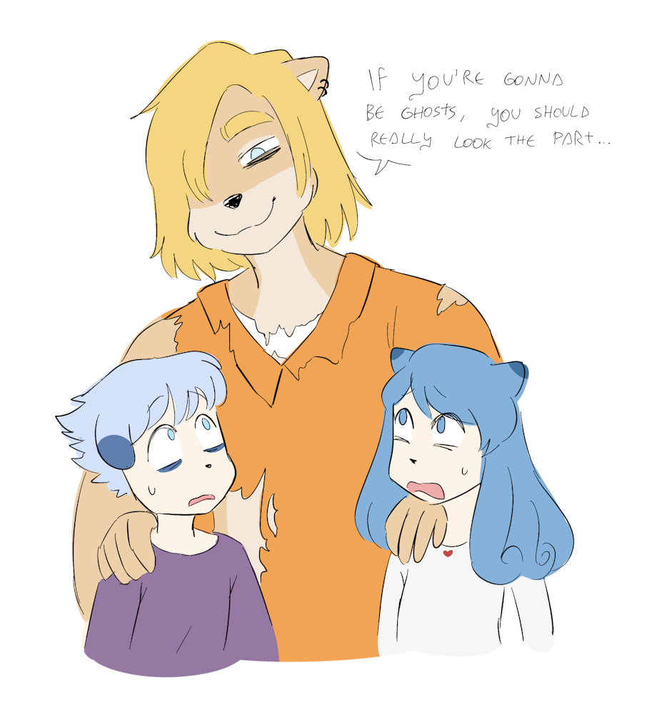The twins have suddenly jumped in front of you, pretending to be ghosts! They speak in eerie, yet cute voices before moving around, covered in white sheets with holes in them. The two later unveil themselves and laugh as they think they startled you...but the real shocker is when you see an unfamiliar, scary looking man suddenly appear behind them, wearing inmate clothing. After he speaks, the man scares off the twins as they run in a panic...just who was this man that appeared, and why were the twins so terrified...?