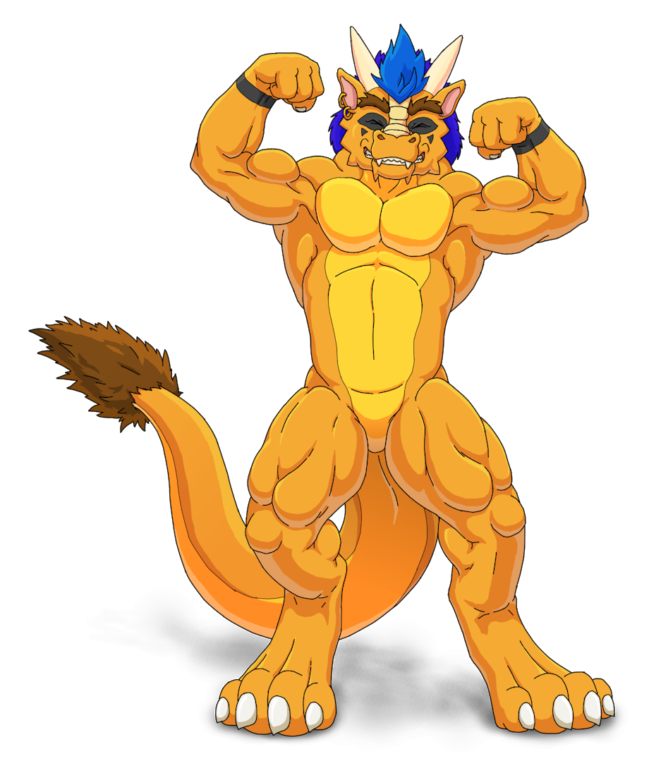 Heeey, wanted to draw an anthro char for a change and hey, who else to draw for starters than my own Digimon-ish dragon character, Ryoru. So hey, here's that happy beefy boy giving a gooood happy flex~