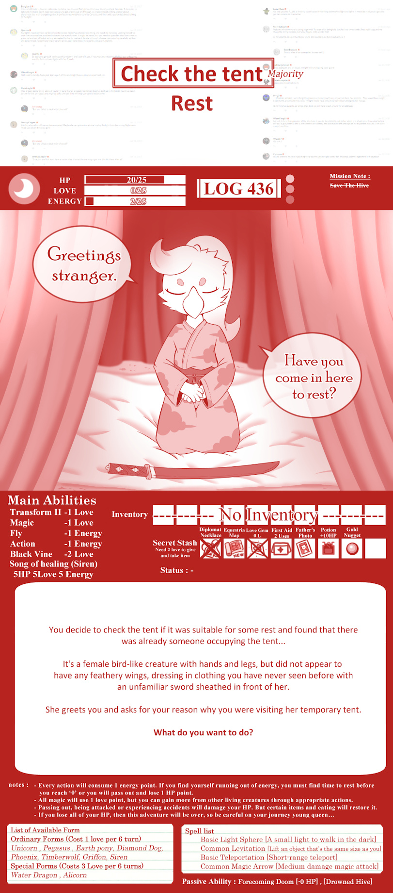 This is a little event I come up for all my patron to have some fun. It's a story of young hybrid pony-changeling who try to find her father.