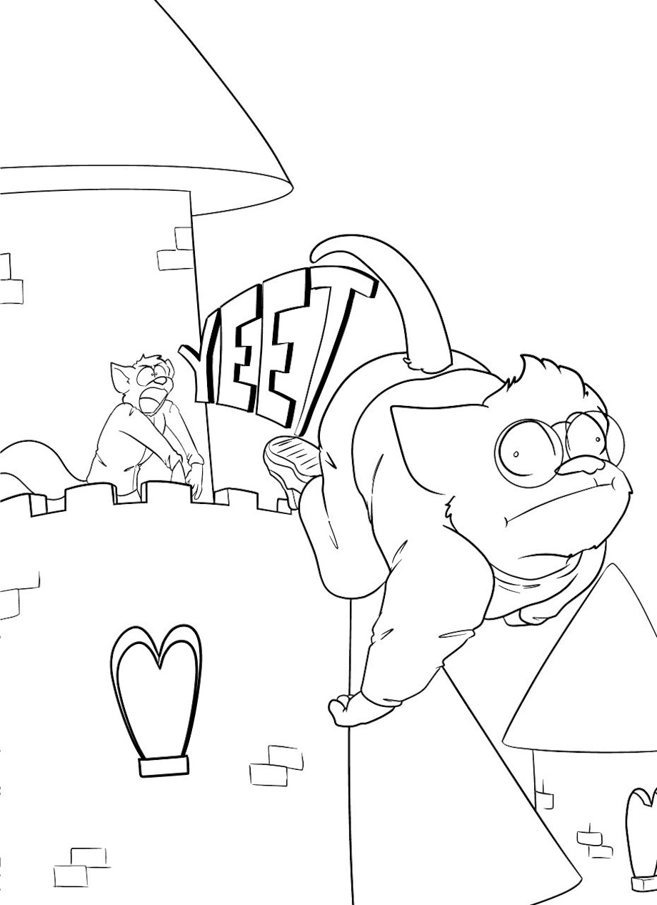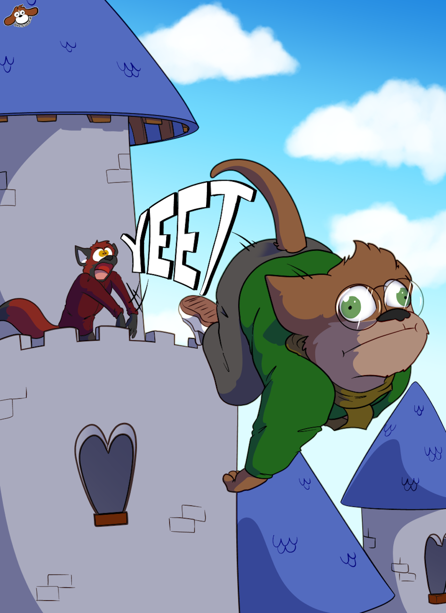 Jesse just couldn’t leave well enough alone. Just had to keep guessing and guessing. Well he stole the thunder from the moment and Blaze wasn’t happy, so yeet the cat of the castle he did. Drawn by Reyn Goldfur.