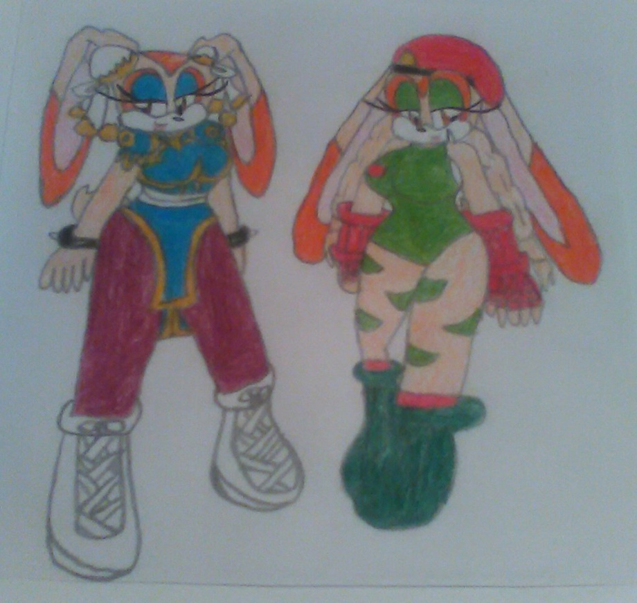Doodles of older Cream dressed as both Chun Li and Cammy from the Street Fighter series.