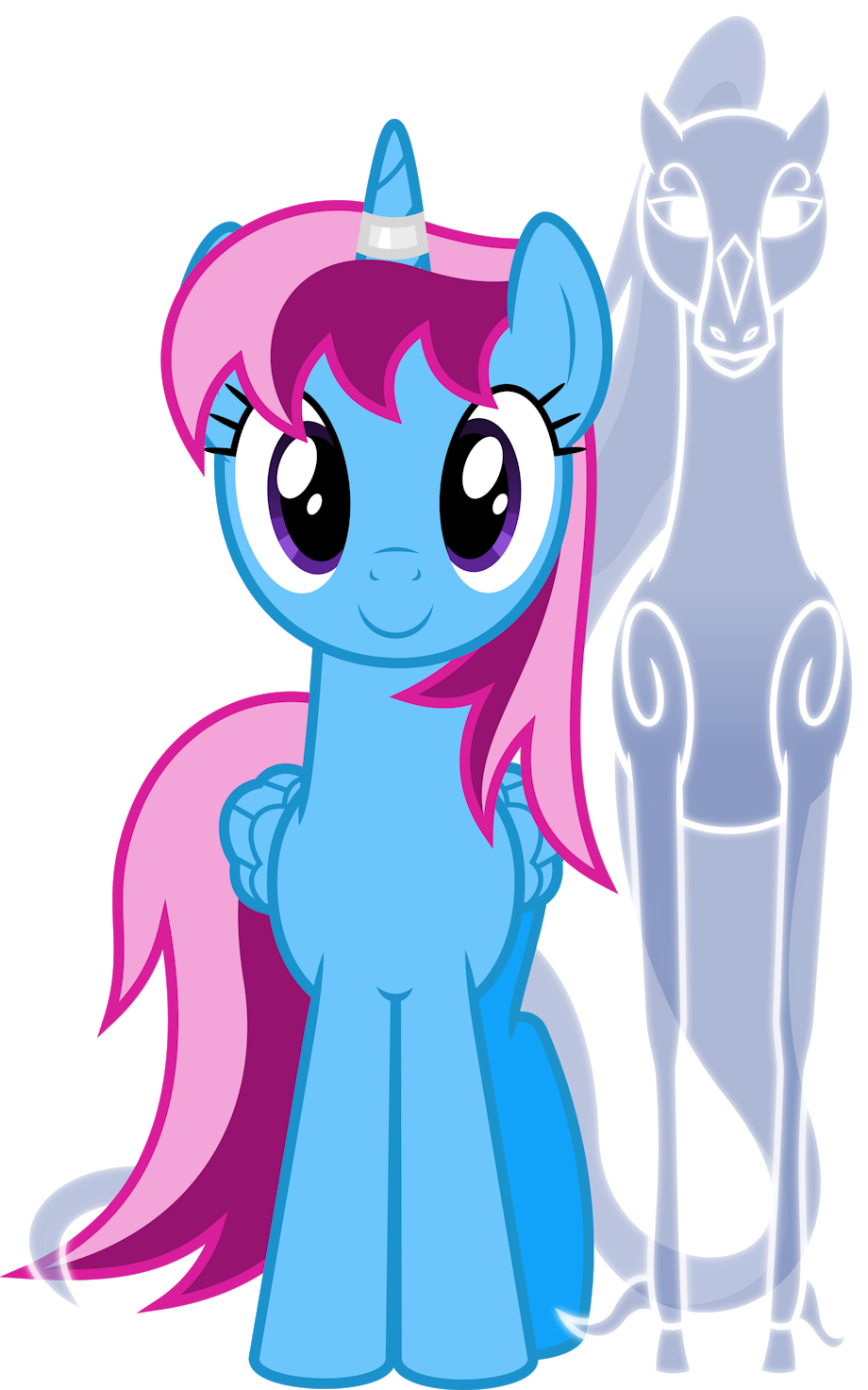 I had an unusually large headache with Spindle's translucency for this picture, my own submission to the 2020 Derpibooru community collaboration. The problem was that in an earlier version, the opacity from Spindle's "shoulders" to the start of her legs was discontinuous and looked out of place; I resolved that issue by making the lower part of her torso more opaque.