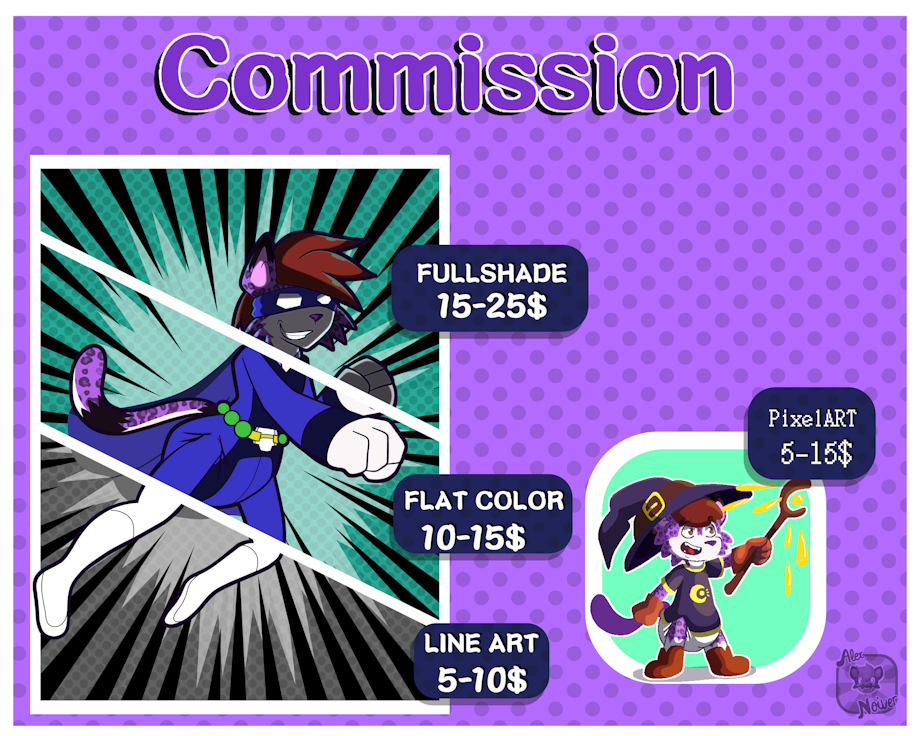 1) The order of delivery of the commission is according to the order of arrival of the commissioner 2) Bargains of the commission price are not accepted 3) The total commission price is paid in advance 4) The limit to demand a refund is two months 5) Commissioners may request a commission advance 6) EXTENSIVE touch-ups or modifications are subject to an extra charge 7) Commissioners cannot erase the watermark 8) AlexNoiver has the right to publish the commission giving credit to the commissioner. Unless the commissioner does not want to publish it (it must be notified in advance) 9) The commissioner must send references regarding the commission as: Character, pose, clothing, action .etc 10) Payment is made by paypal 11) Note that drawing: ABDL BABYFUR and DIAPER FETISH (this list is subject to change) 12) NO DRAWING: gore, extreme scat, realistic style, wick (this list is subject to change) 13) The commissioner must decide the title of the commission 14) the commissioner must give the respective credits to AlexNoiver 15) Any questions or questions will be answered by twitter