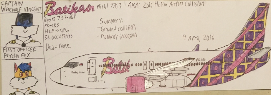 Batik Air Flight 7703 was a scheduled domestic flight operated by Lion Air's subsidiary Batik Air from Halim Perdanakusuma Airport in Jakarta to Sultan Hasanuddin International Airport, Makassar. On 4 April 2016, while taking off from Halim Perdanakusuma Airport, the Boeing 737-800 operating the flight (registration PK-LBS) collided with a TransNusa Air Services ATR 42-600 (registration PK-TNJ), which was being towed across the runway.
