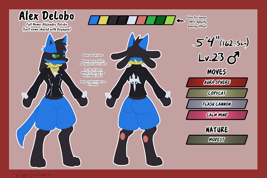 After making Alex in.... I think March, I never bothered making a ref sheet for him because he didn't really deviate too much from the standard Lucario design.