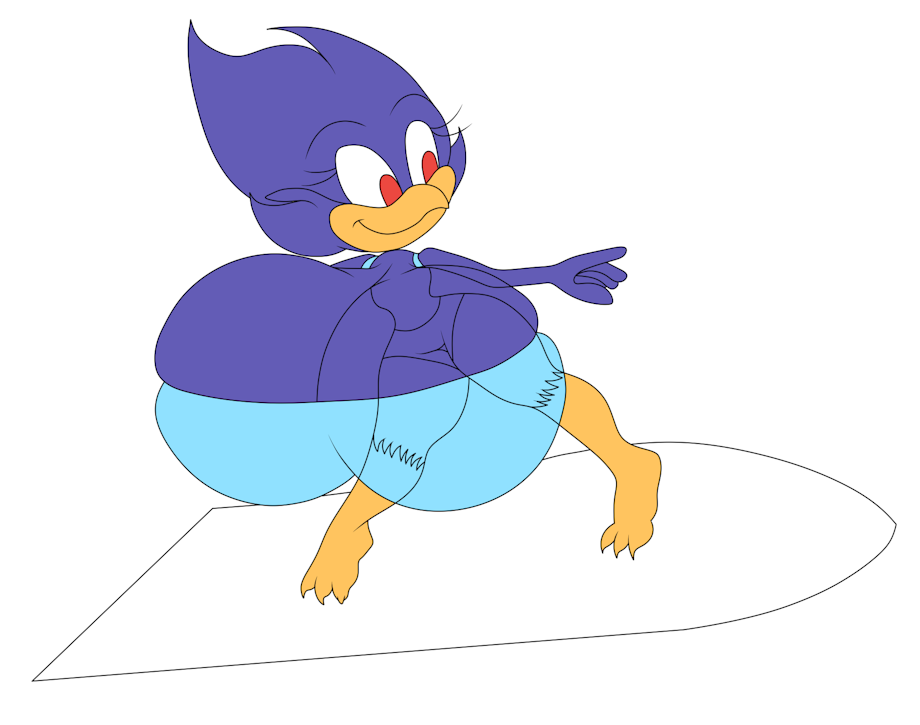 Busty Bird Sonic style loves to surf.(truthfully I wanted Sonic Riders style boarding but I just couldn't get that done so early summer surfing)
