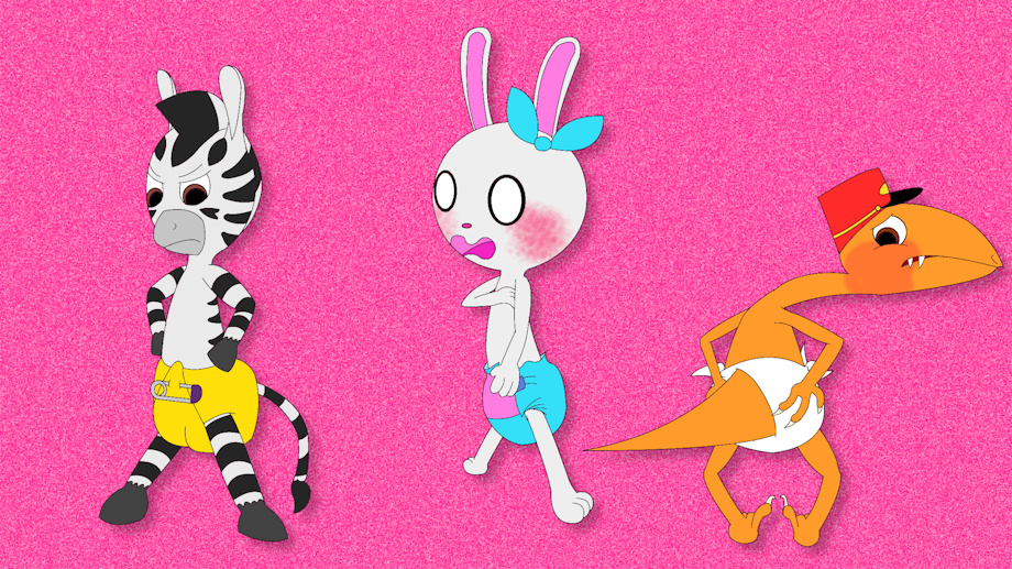 First, we have Zou, an energetic Zebra who normally wears Overalls, but now he’s reduced to wearing diapers. Who knows, maybe he does still wear diapers/ pull ups in the show, we haven’t seen him in his undies yet. Heck, he even still wears pajamas with a flap in the rear!