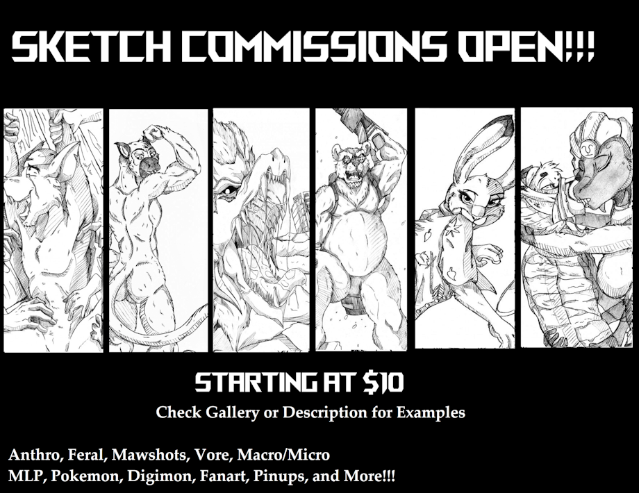 Sketch Commissions are currently open. I am opening up for 5 slots this time, but might add more depending on how things go. Comment or PM me if interested or if you have any questions.