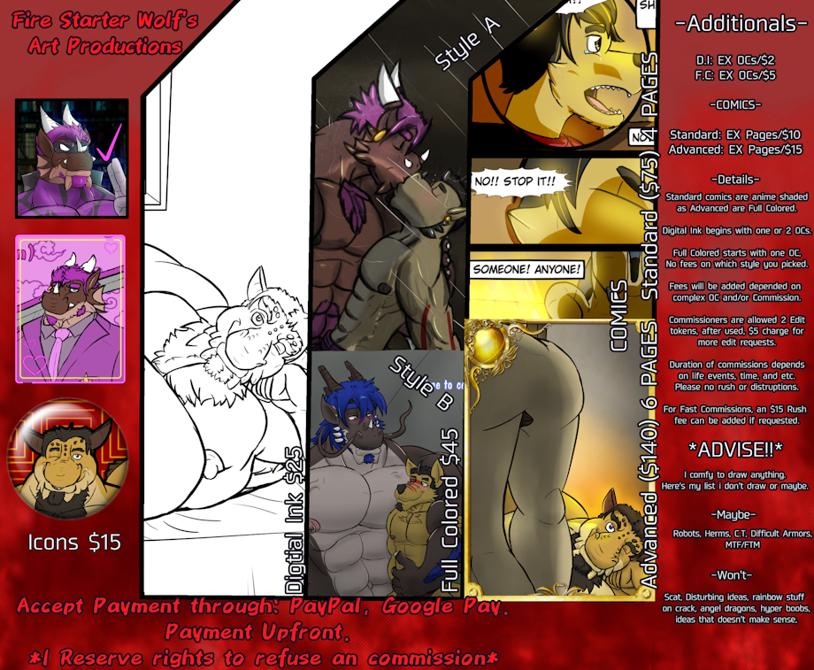 If you wish me add my characters with yours in a commission, here's a pointer before getting to it. Most of these dudes are gay, bi or whatever, but some's traits are to their partners or way of loving. It's ok you want em to be brainwashed, mind controlled, or yadda yadda..
