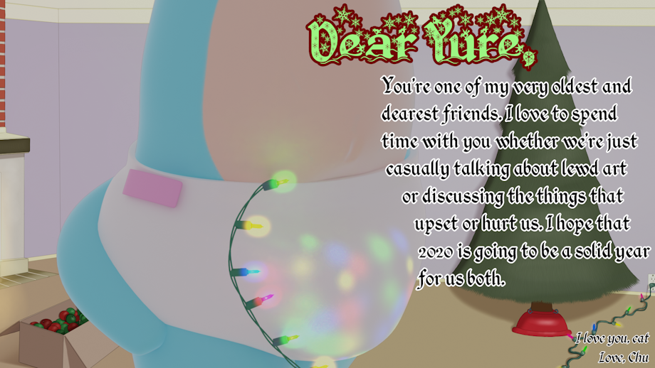 Rainchu made this for me. He was making a series of Christmas cards for his friends. All of the cards involve Christmas lights being in contact with the person's penis, tho. o.o So, for my card, he drew Yure's diaper full of Christmas lights.x3 Let's just hope Yure does not pee. o.o