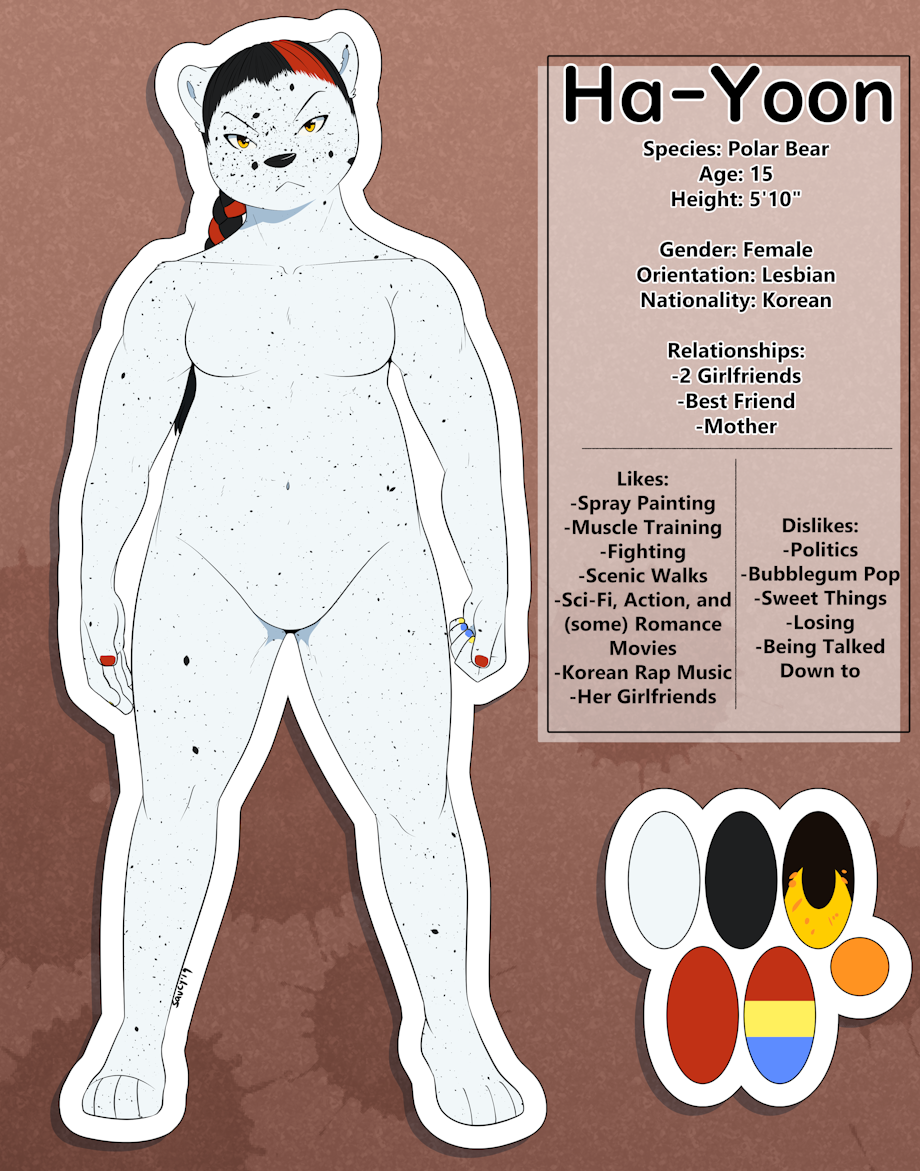 A calm yet seemingly angry lesbian delinquent who enjoys causing mayhem from a distance. Has two girl freinds and a mom. Leader if a group of 8 transfer students. Has mommy issues. likes fighting, but only if someone else instigated it so she can pass the blame as self defense.