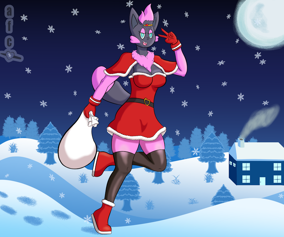 A christmas picture featuring my zorua Zabrina, tried to give her some touches to her eyelashes to make it look better, still experimenting and maybe will try to see if i can improve her style a little more.