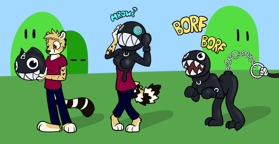 I love chainchomps and always wanted one as a pet... so I got Kauko this rad "costume" I thought she might like! Look, she's all smiles about it!!