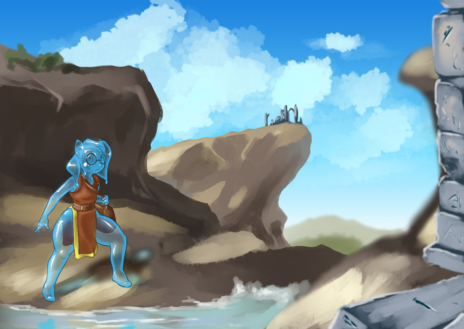 A little slime girl (pony) out on her own quest. I need to learn some backgrounds and such. I'm still working at it. ^_^