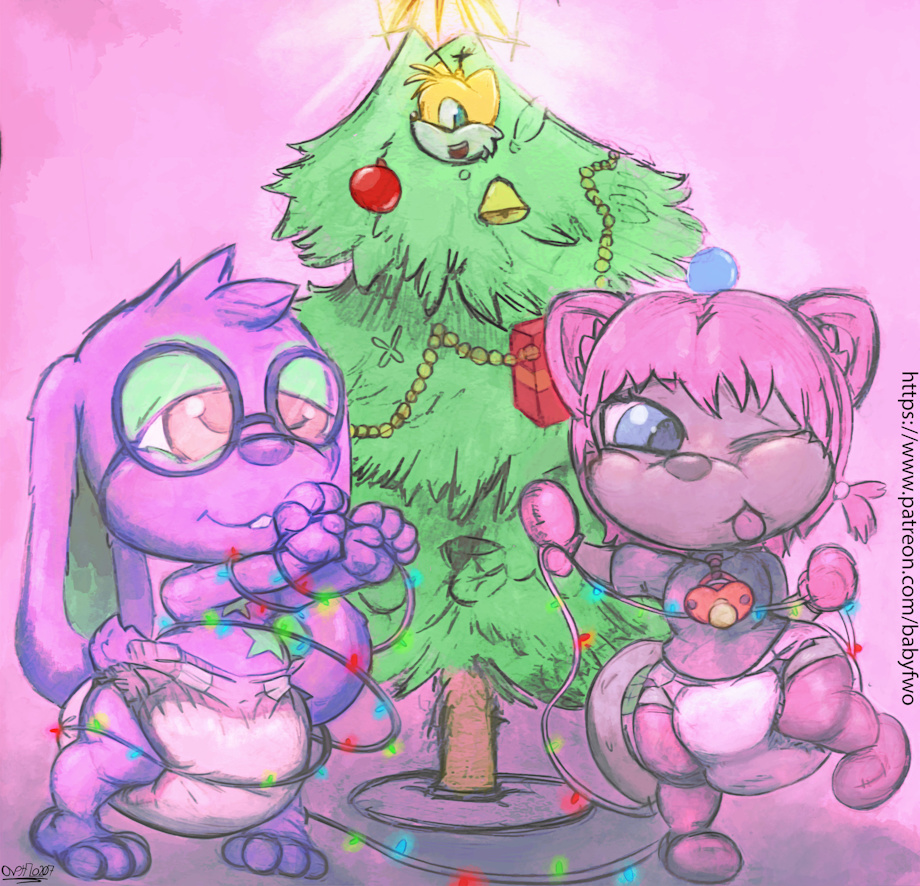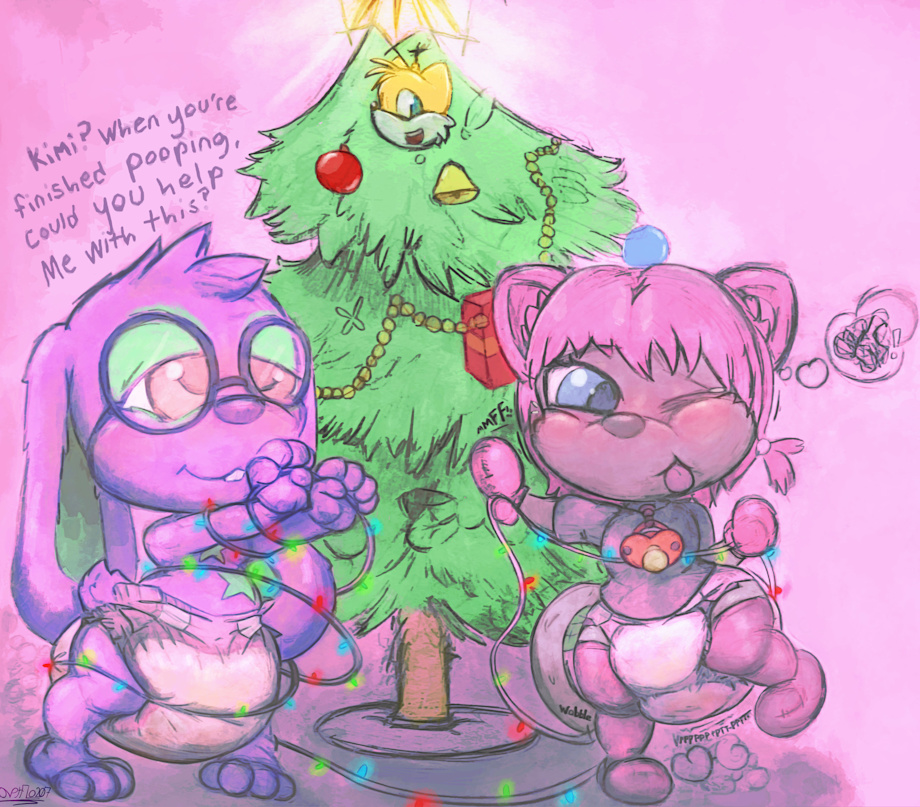 Tommy and Kimi are cutely and clumsily decorating the Christmas tree, and wouldn't you know it, they're a bit tied up in the situation.....and his sister is in the middle of taking an epic dump. X#3