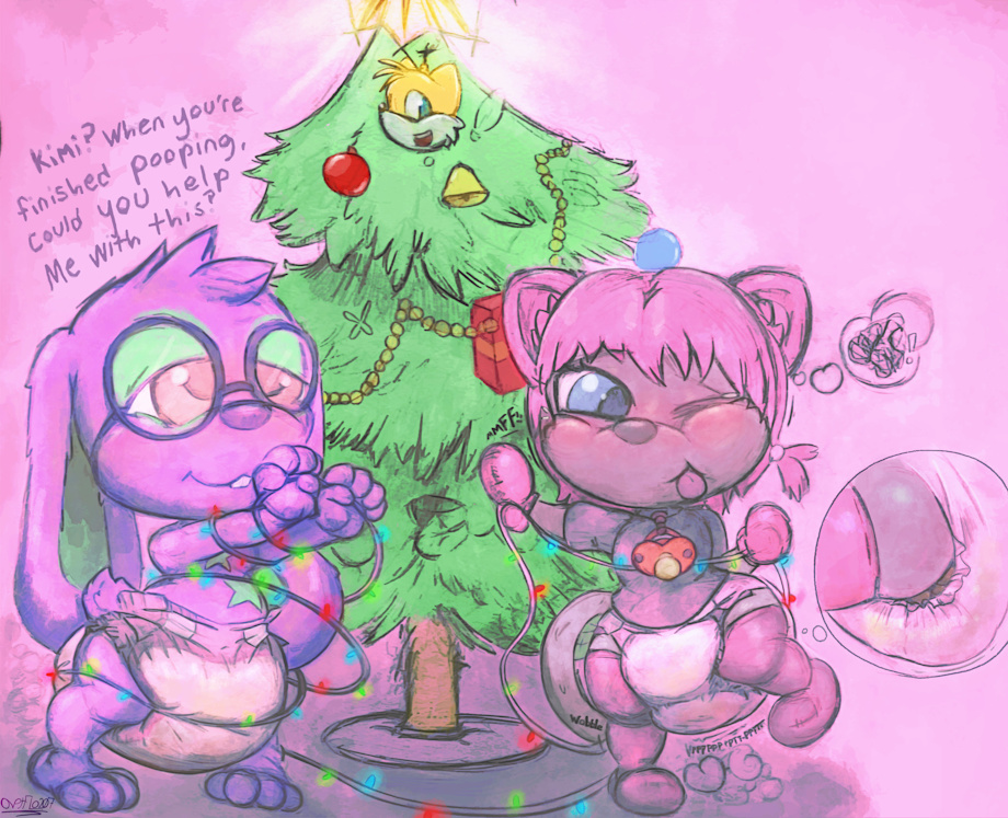 Tommy and Kimi are cutely and clumsily decorating the Christmas tree, and wouldn't you know it, they're a bit tied up in the situation.....and his sister is in the middle of taking an epic dump. X#3