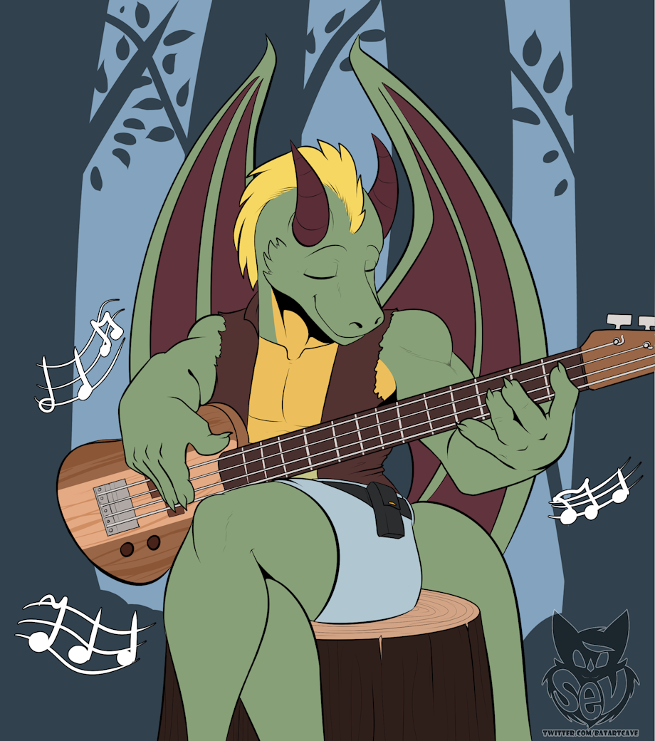 Meet a new addition to my character roster, Elijah. He's a bisexual dragon bard, who travels far and wide with his trusty bass.