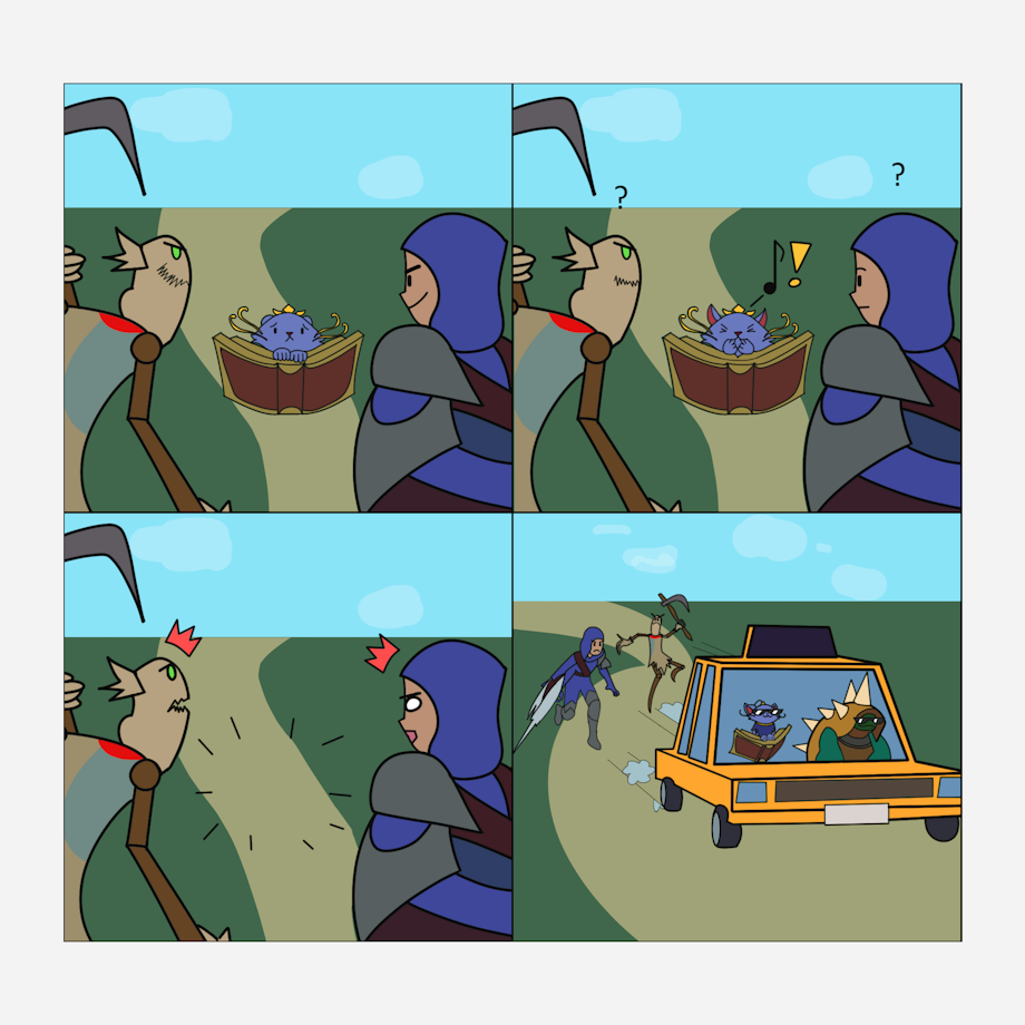 A friend pitched the idea to me some time ago and I liked it, so I decided to draw it and practice some comic making things in the process, like style and workflow. I tried to prioritize speed and simplification for it!