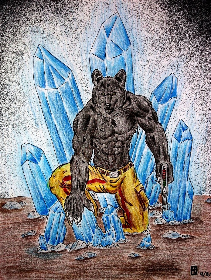 I drew this for an author in Tulsa named K.D. Wentworth. She wrote two books featuring this character, the first is called Black on Black and the second is called Stars over Stars. I read those books religiously several times a year, and I had the chance to meet her at a science fiction convention called Conestoga where I presented her with the full-sized, matted picture and she signed my copies of her books :D. Yes, he does have six fingers (two thumbs, four fingers). Hope you like it!
